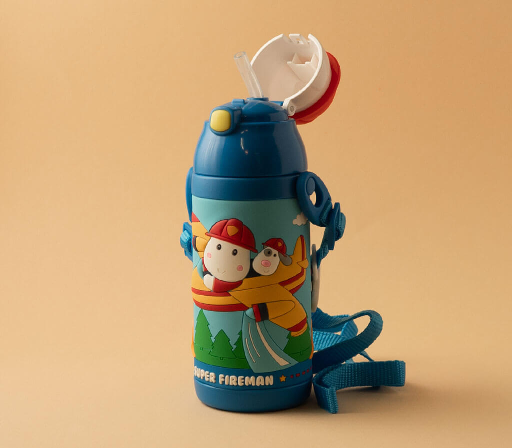 Dein Kind wird diese Flasche stolz präsentieren! Dank des abnehmbaren Trageriemens und des austauschbaren Griffs kann es die Flasche bequem überallhin mitnehmen.